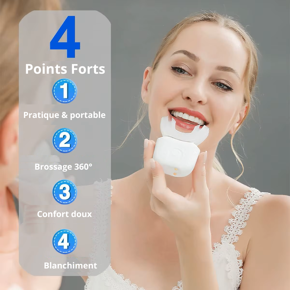 Brosse à dents électrique portable en forme de U, offrant un nettoyage automatique 360°, douce pour les gencives et idéale pour les soins bucco-dentaires quotidiens.